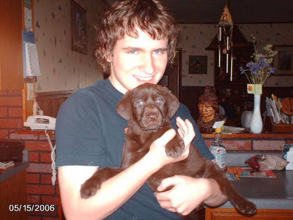 I walked into the house where all the puppies were. In the living room there was a small wooden pen with tiny lab pups, each still too small to leave their mom. Among the litter there was about 8 or 9 pups, all black male Labradors. They were all asleep, except for one. One puppy wasn’t black or a male. She was the only girl and the only chocolate lab of the whole litter, and she was the only one awake, whimpering, and crawling around. They told me she was the first one to open her eyes and the first one to walk. She taught all the other puppies on how to get out of the pen. She was the prized pup of the litter, but I couldn’t have her, since she was already promised to another buyer. Noticing the sleepy brother in the corner all to himself, I figured I would pick him. They said he was the sleepy one, never getting into any trouble. Bingo! The perfect pup to start with. Dad said I could only have a male to begin with, so I had my mind made up.