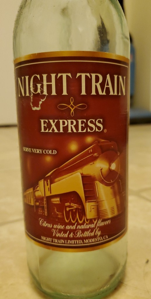The night went like it has every other time. The moon high in the sky, fire with its licking flames reflecting in the pond. Some bluetooth device playing music from a phone, and the bottles cracked open, never poured into a cup, but slurped from the neck. The used bottles lay discarded on the ground, all over the yard. One or two may have been discarded in the water, others were shattered against the trees. The results of the infamous Night Train Express, made famous by the band Guns N Roses. For 5 dollars a bottle of bum wine was a great deal, but the taste was anything but great.